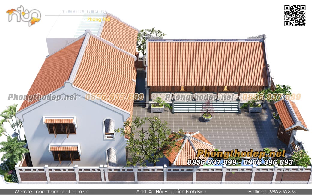 - Kết hợp sân vườn: Mẫu nhà này rất hợp với sân lát gạch Bát Tràng, hồ cá Koi hoặc non bộ phía trước để tụ khí (Minh đường tụ thủy).