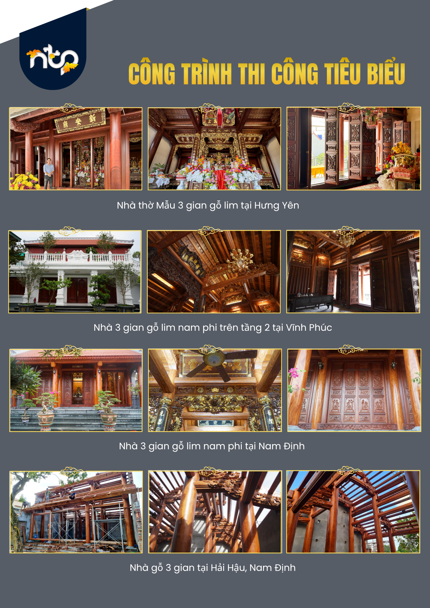 - Thi công nhà gỗ: là những căn nhà gỗ 3 gian, 5 gian, nhà thờ, từ đường được xây dựng trên khắp mọi miền tổ quốc.