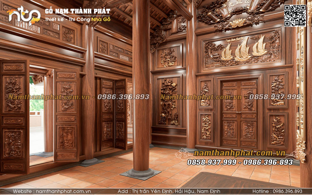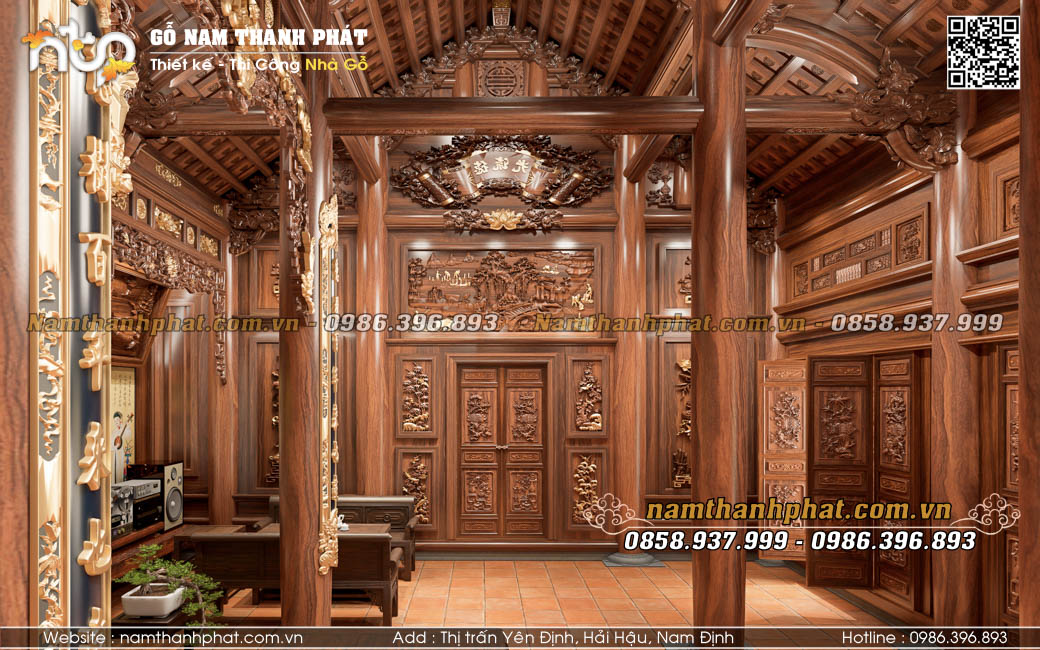 Nội thất nhà gỗ 5 gian là một không gian đầy hoài niệm truyền thống từ bao đời nay của người Việt. Trong không gian ấy, gia chủ thường bố trí những món đồ tuyền thống như: sập gụ, tủ chè, trường kỷ,... Và trong mẫu thiết kế lần này, nội thất Nam Thành Phát mời quý vị cùng chiêm ngưỡng nét tinh xảo, độc đáo trong từng hoa văn kiến trúc và bố trí nội thất khoa học. Và xem xem mẫu thiết kế này có điểm gì khác biệt so với các công trình khác bạn nhé.