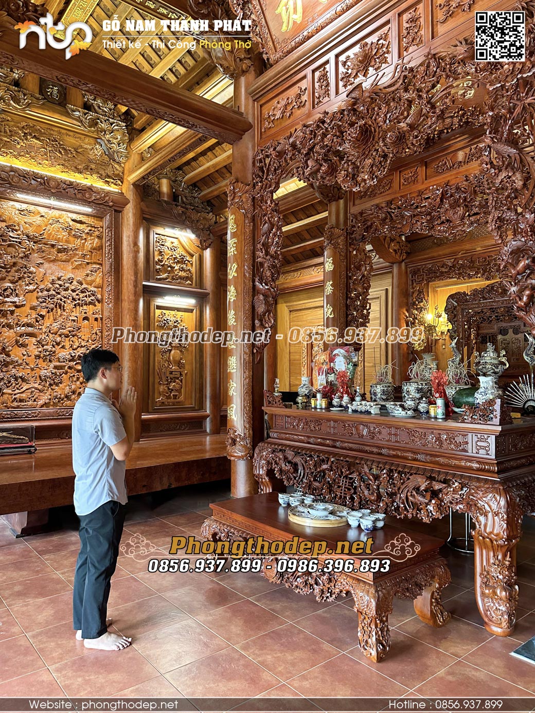 Quý khách có nhu cầu thiết kế, thi công nội thất phòng thờ nhà gỗ xin vui lòng liên hệ: