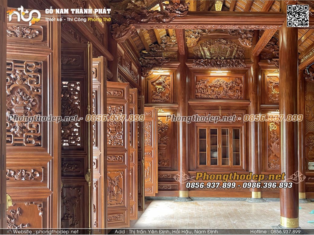 Nội thất Nam Thành Phát đã có kinh nghiệm nhiều năm trong bố trí và sản xuất trực tiếp toàn bộ nội thất nhà thờ họ 3 gian, từ đường như: bàn thờ ô xa, án gian, chấp tải, sập thờ, cửa võng thiều châu, hoành phi câu đối, ngai thờ, khám thờ, bài vị, chấp kích, bát bửu, hạc thờ, … Các sản phẩm đảm bảo chất lượng gỗ, hoa văn tinh xảo và có tuổi thọ lưu truyền được nhiều thế hệ. Nội thất Nam Thành Phát chúng tôi cam kết chất lượng bằng hình thức bảo hành dài hạn cho toàn bộ sản phẩm cung cấp.
