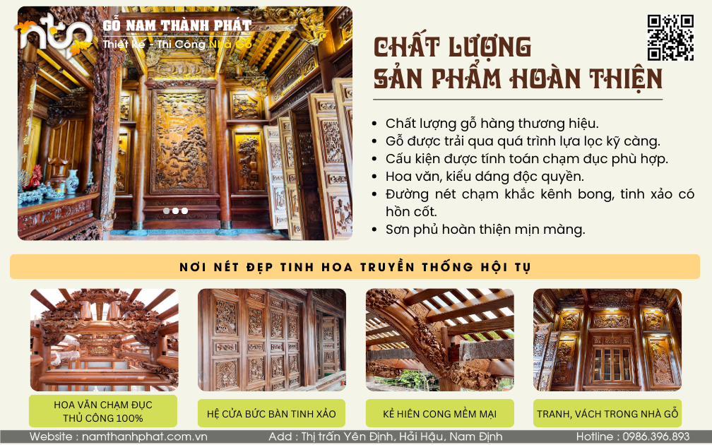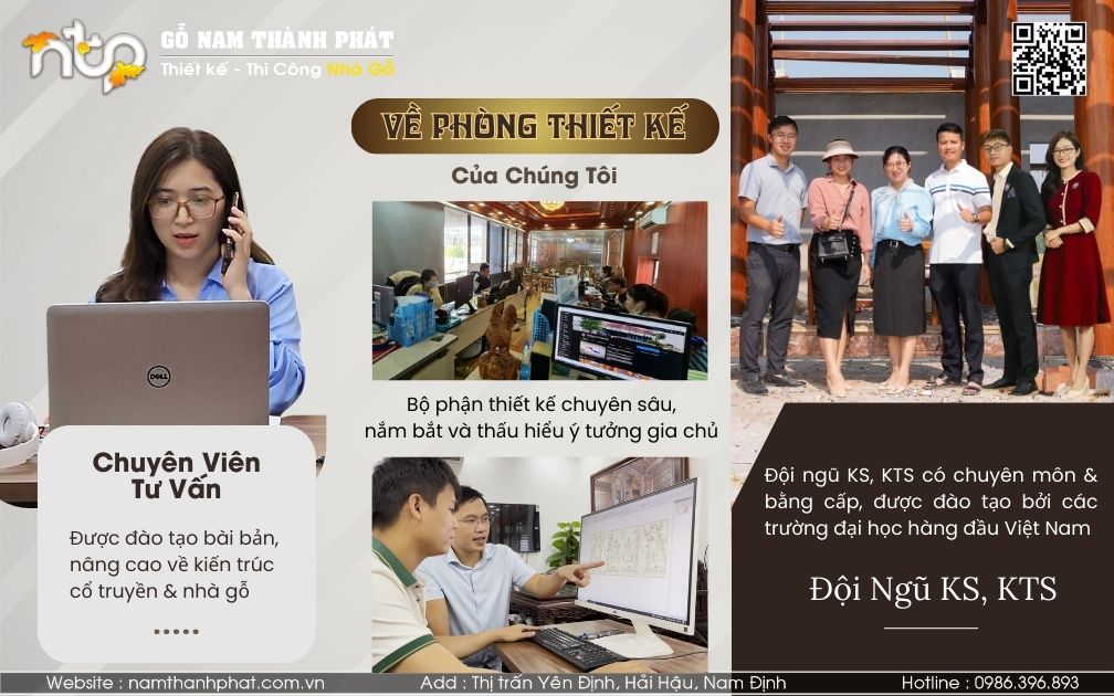 Nếu quý vị đang có ý định xây dựng 1 căn nhà gỗ 5 gian truyền thống Bắc bộ hay có những băn khoăn về nhà gỗ/ phòng thờ, hãy liên hệ ngay Nam Thành Phát để được các KTS tư vấn tận tâm. Từ đó có giải pháp tối ưu, đúng chuẩn từ từng chi tiết nhỏ nhất cho căn nhà của mình.