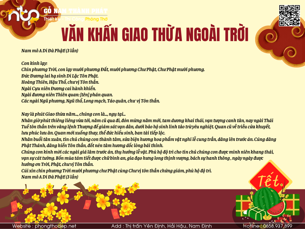 Hôm nay là ngày.... tháng..... năm Giáp Thìn 2024, tín chủ con thành tâm sửa biện hương hoa lễ vật, kim ngân trà quả đốt nén hương thơm dâng lên trước án.