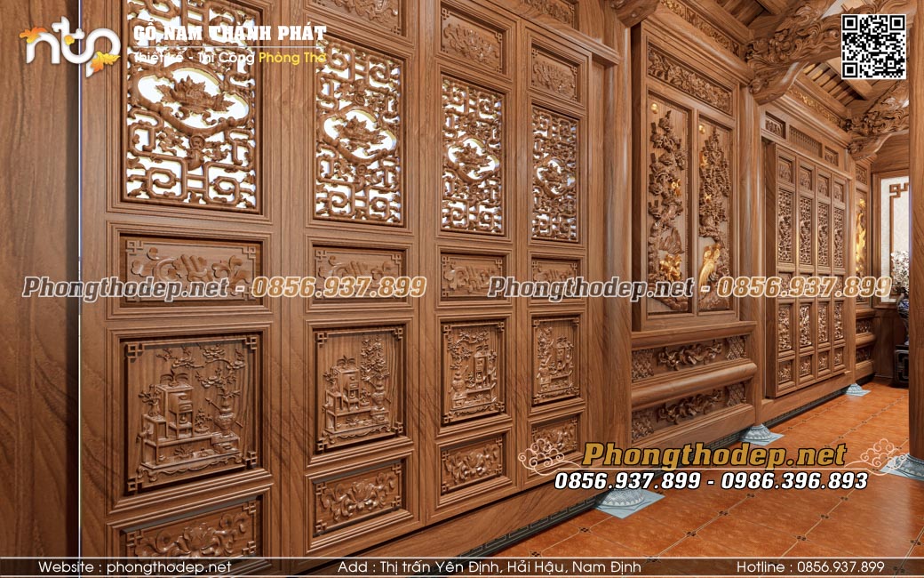 Hệ cửa bức bàn cũng được chạm đục công phu và tỉ mỉ.
